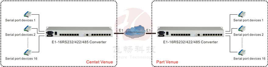 This interface converter is based on FPGA, providing 16Channel RS232/485/422 transmission on E1 interface. The product breaks through contradictions between traditional serial interface communication distance and communication rate, besides, it also can solve electromagnetic interference, ground ring interference and lightning damage. The device greatly improves reliability, security and confidentiality of data communication. It is widely used for various industrial control, process control and traffic control occasions, especially for Bank, and Power and other sectors and systems which have special requirements of electromagnetic interference environment. RS232/RS485/RS422 channel can transmit adaptable serial data asynchronously 0Kbps-19200Kbps baud rate.