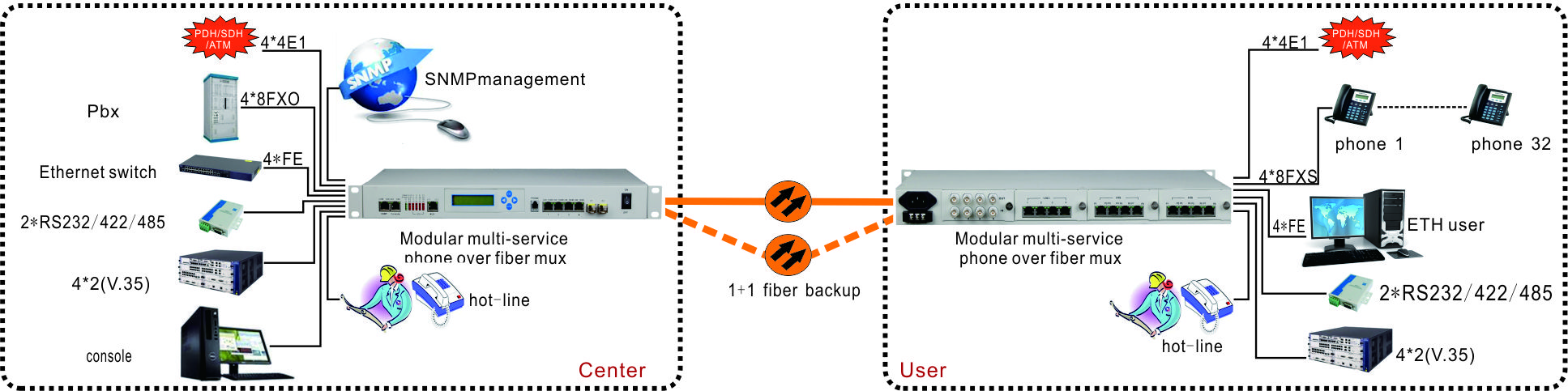 Voice Over Fiber/E1 Voice Over E1 Series Voice Over Fiber Series Multi-service Voice RACK Mount Voice Modular multi-service optic multiplexer More>>