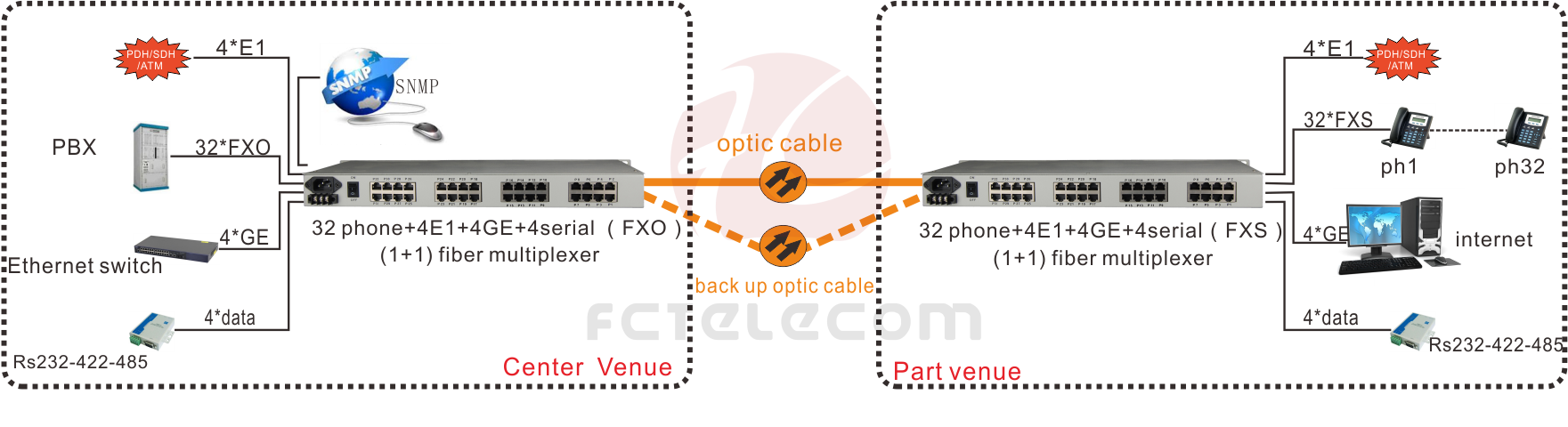 Voice Over Fiber/E1 Voice Over E1 Series Voice Over Fiber Series Multi-service Voice RACK Mount Voice Modular multi-service optic multiplexer More>>