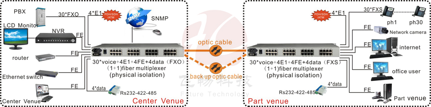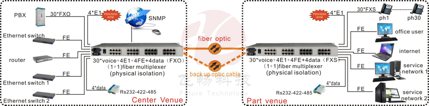 Voice Over Fiber/E1 Voice Over E1 Series Voice Over Fiber Series Multi-service Voice RACK Mount Voice Modular multi-service optic multiplexer More>>