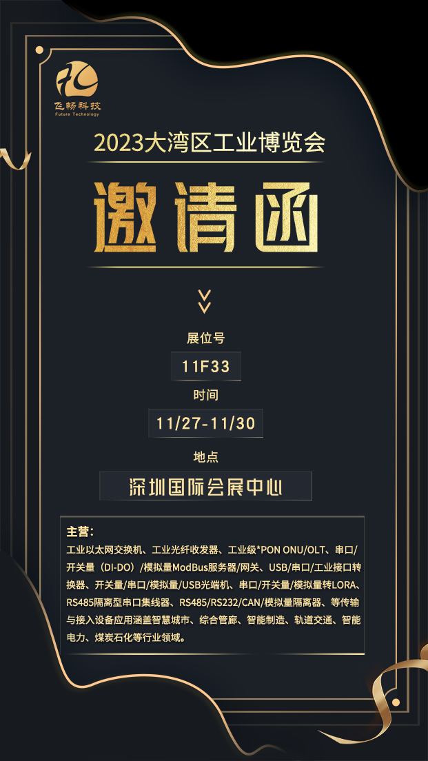 我代表杭州飛暢科技有限公司,誠摯邀請(qǐng)您參觀我們?cè)?023年大灣區(qū)工業(yè)博覽會(huì)上的展臺(tái)(展臺(tái)號(hào):11FF33)。