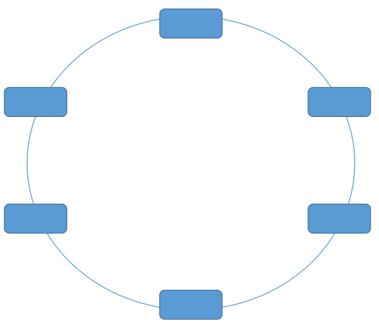 環(huán)型拓?fù)浣Y(jié)構(gòu):將信息傳輸線路構(gòu)成個封閉的環(huán)型, 各結(jié)點(diǎn)通過中繼節(jié)點(diǎn)連入網(wǎng)內(nèi),各中繼節(jié)點(diǎn)間首尾相接,信息單向沿環(huán)路連點(diǎn)傳送。各節(jié)點(diǎn)通過通信線路組成閉合的回路,環(huán)中數(shù)據(jù)只能單向傳輸。環(huán)型拓?fù)浣Y(jié)構(gòu)圖如下: