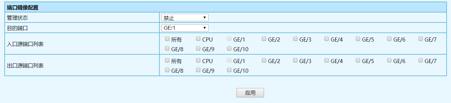 | 目的端口 | 選擇端口鏡像的目的端口,可通過下拉框進行選擇。 |