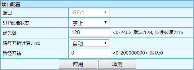 | STP使能狀態(tài) | 端口的STP使能,[禁止]或[使能],默認為禁止 |