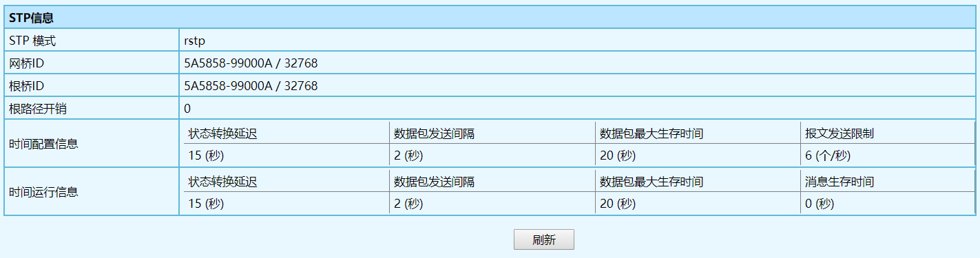 | STP 模式 | 當前的 STP 模式,支持 RSTP,兼容 STP |