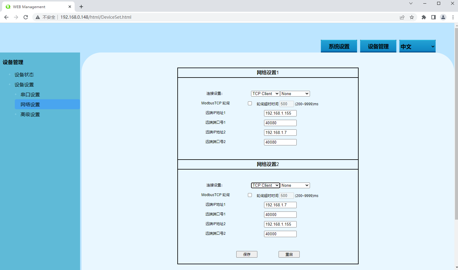 | TCP Client Mode | TCP Client Mode配置欄 |
