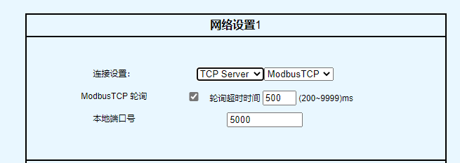 | TCP Server Mode | TCP Server Mode配置欄 |