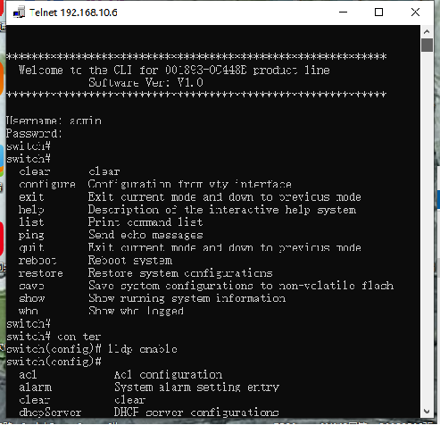 常見是的電腦通過串口線纜連接到交換機上單獨的管理接口使用(console)。以及類似的telnet,即使用telnet工具通過IP連接到交換機打開console界面進行管理。如下圖: