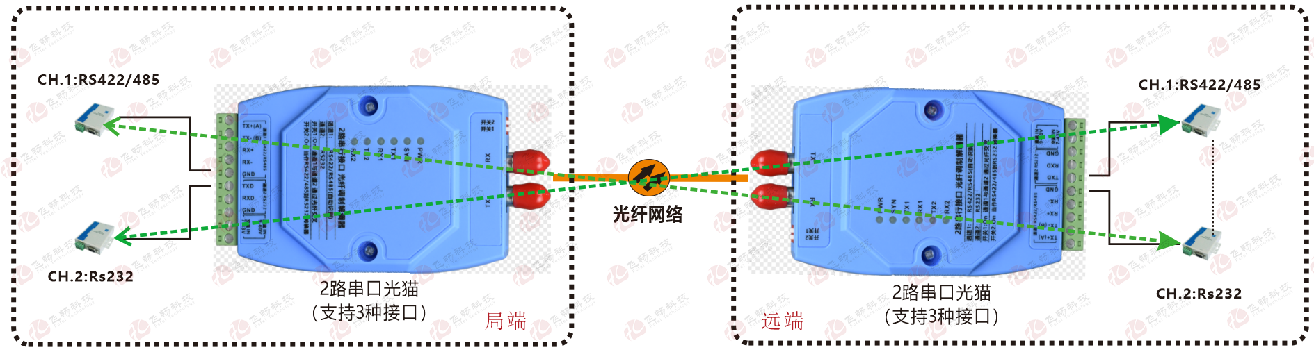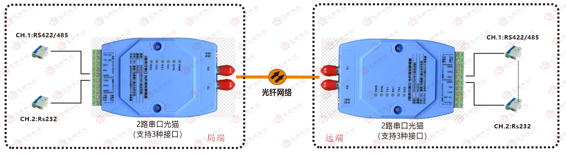 | 產(chǎn)品功能描述 | 在光纖上同時傳送1路RS422/485串口,與1路RS232串口 |