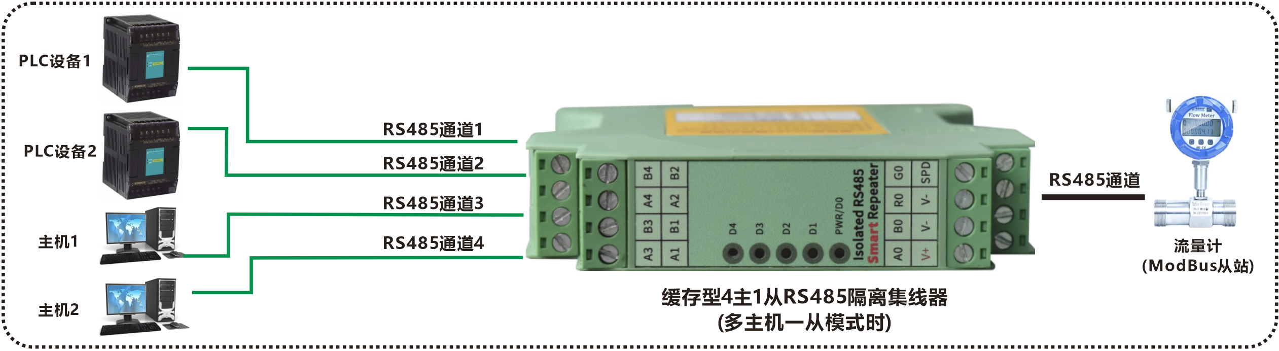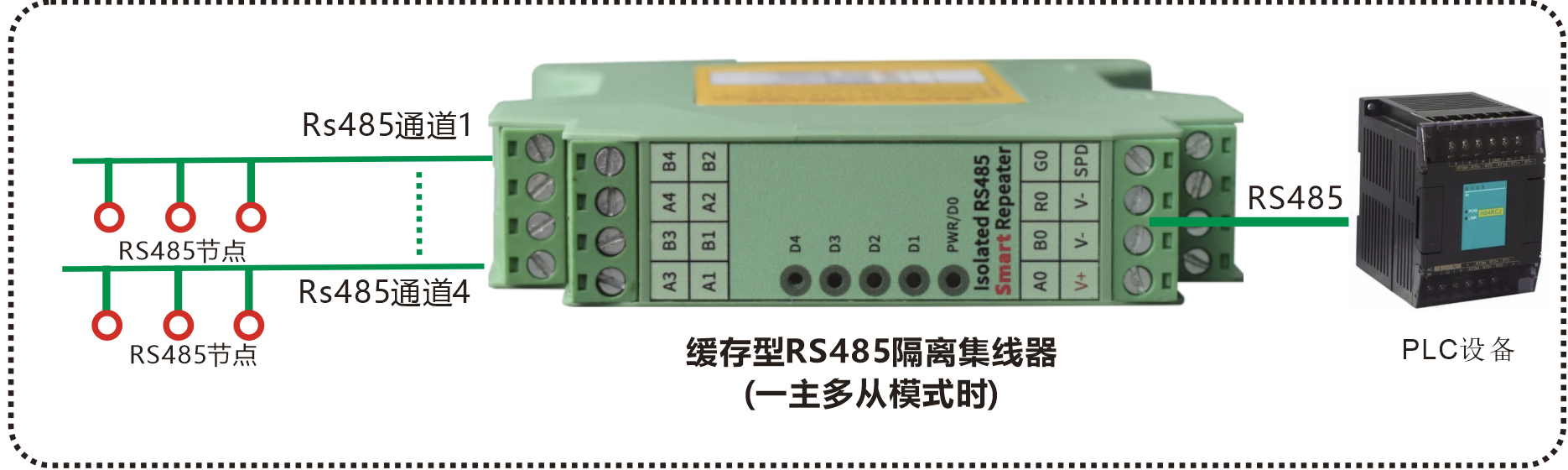 | 產(chǎn)品功能描述 | 緩存型 4主一從RS485隔離集線(xiàn)器 |