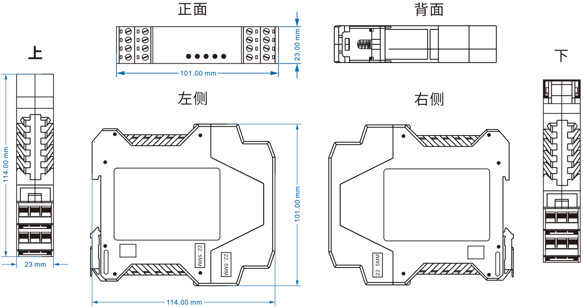 電源輸入DC9-70V ,功耗<1W 過(guò)載保護(hù):支持;反接保護(hù):支持; 接入端子:3芯5.08mm間距端子 |