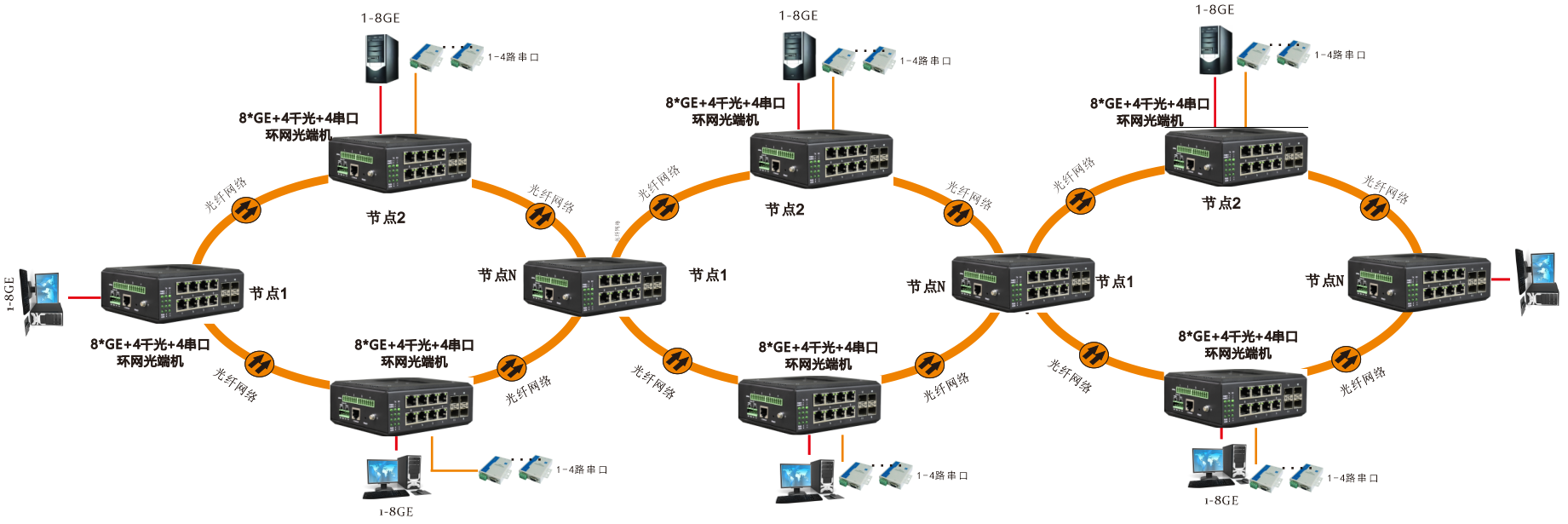 | 端口數(shù) | 8個(gè)10/100/1000M RJ45電口、4個(gè)100M/1000M 光接口,1個(gè)Console口,4個(gè)串口 |