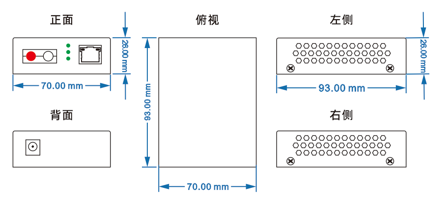 外殼:鋼殼 尺寸:70mm(長) x 83mm(寬) x 26mm(高) 安裝方式:壁掛式安裝 |